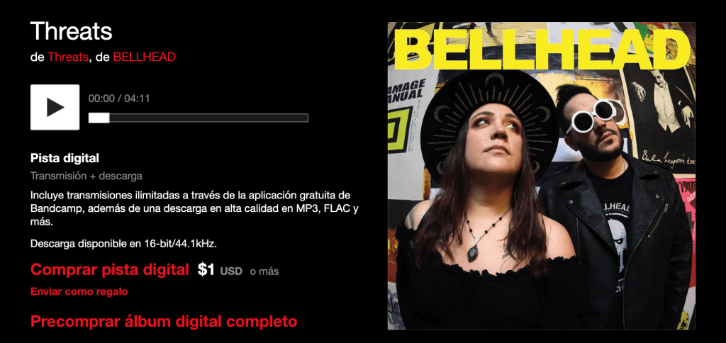 El dúo de Chicago BELLHEAD prepara el lanzamiento de Threats, su primer EP con material nuevo desde Good Intentions (2023), disponible a partir del 8 de abril en CD, descarga digital y streaming. El sencillo homónimo, adelantado el 10 de marzo mediante preorden en Bandcamp, muestra una evolución en su composición manteniendo su esencia oscura: un enfoque renovado en su narrativa musical acompañado de un cambio de imagen radical. Abandonan su icónica estética en blanco y negro por un vibrante amarillo y, por primera vez, revelan sus rostros (Ivan Russia y Karen Righeimer-Schock) en fotografías a color.