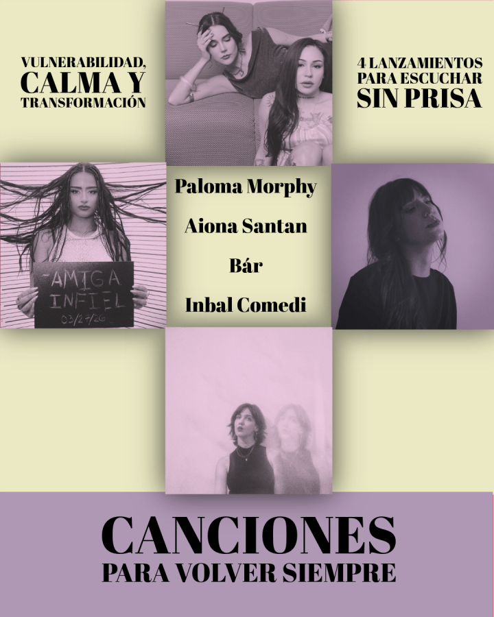 Los nuevos sencillos de Paloma Morphy, Aiona Santana y Bár dialogan con el lanzamiento del álbum debut de Inbal Comedi, generando una curaduría que conecta desde la honestidad emocional y la exploración sonora. Entre pop/rock de tintes vintage, fusiones latinas y folk contemporáneo, estas canciones configuran un recorrido sensible que invita a detenerse y escuchar con calma.